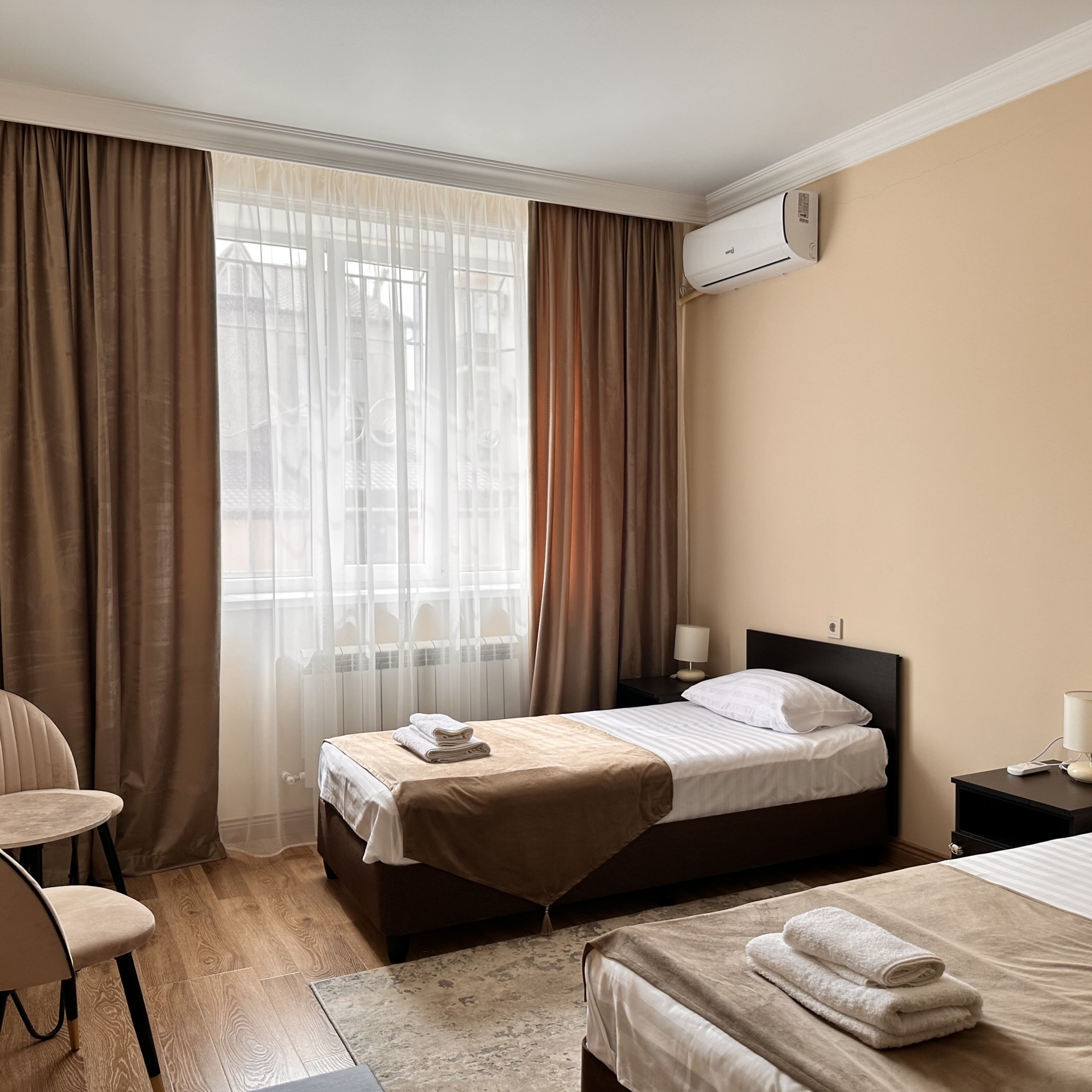 Гостиница «Феникс» - это современное и уютное место для проживания, расположенное всего в 8 минутах от берега Каспийского моря. Отель был основан в 2023 году и предлагает гостям 27 номеров различных категорий, включая стандартные, трехместные. Каждый номер в отеле Феникс оборудован современной мебелью и техникой, включая мини-холодильник и смарт-телевизор, что делает пребывание гостей максимально комфортным. Интерьеры номеров выполнены в приятных бирюзово-зелёной и терракотовой гамме с мягким освещением, создавая расслабляющую атмосферу.