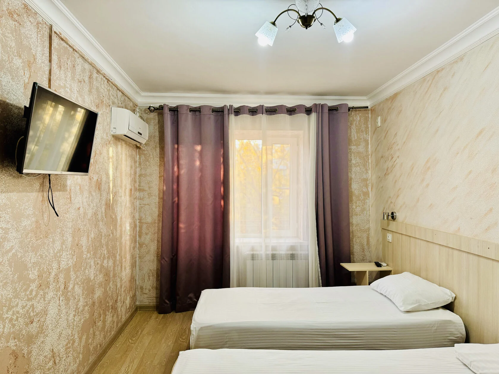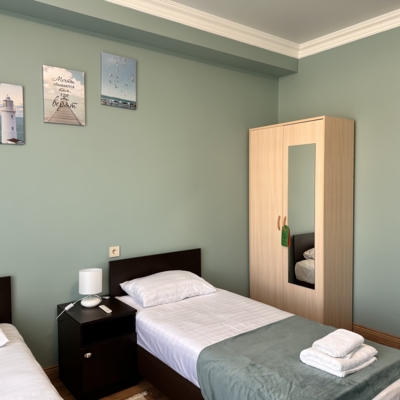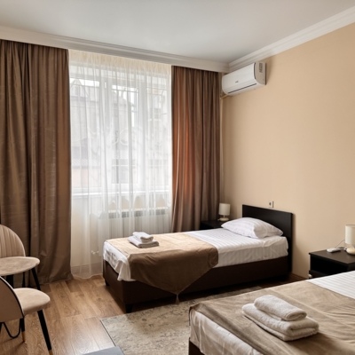 - При бронировании трёхместного номера, предоставляется размещение категории TWIN+ EXB (стандартный номер с двумя раздельными кроватями + дополнительное спальное место( возможно еврораскладушка))