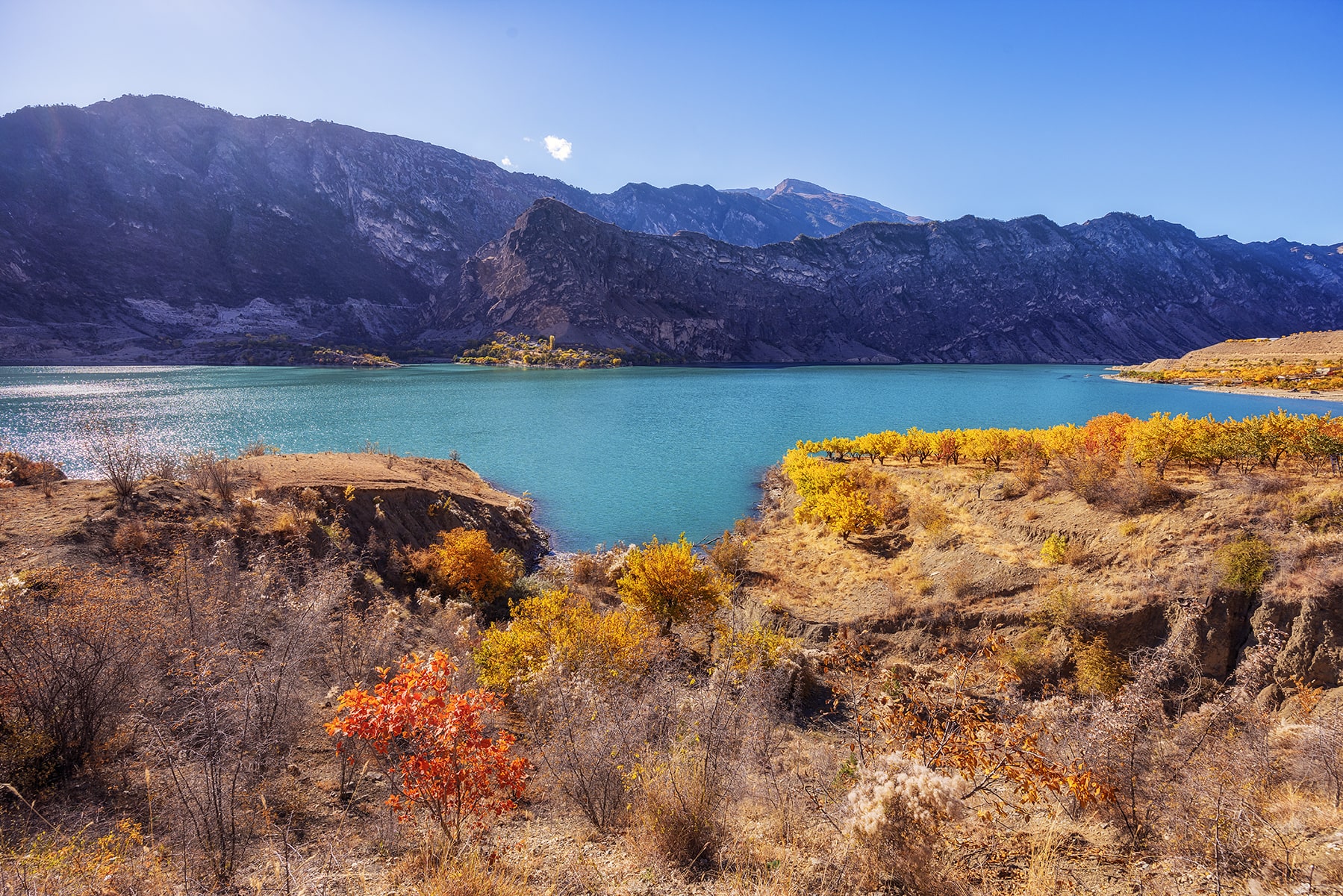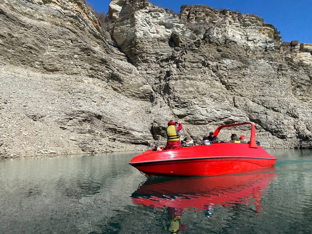 15:00 - Катание на катере по Чиркейскому водохранилищу, образованному на реке Сулак для строительства крупнейшей гидроэлектростанции. Чиркейское водохранилище часто называют «морем в горах». Этот самый крупный водоем на территории Северного Кавказа располагается в узком ущелье реки Сулак в 140 км от места слияния с Каспийским морем. Береговая линия водохранилища сильно изрезана, местами встречаются каньоны и пещеры. Многочисленные бухты и заливы врезаются в невысокие горные образования. Местные живописные пейзажи отдаленно напоминают фьорды Норвегии.