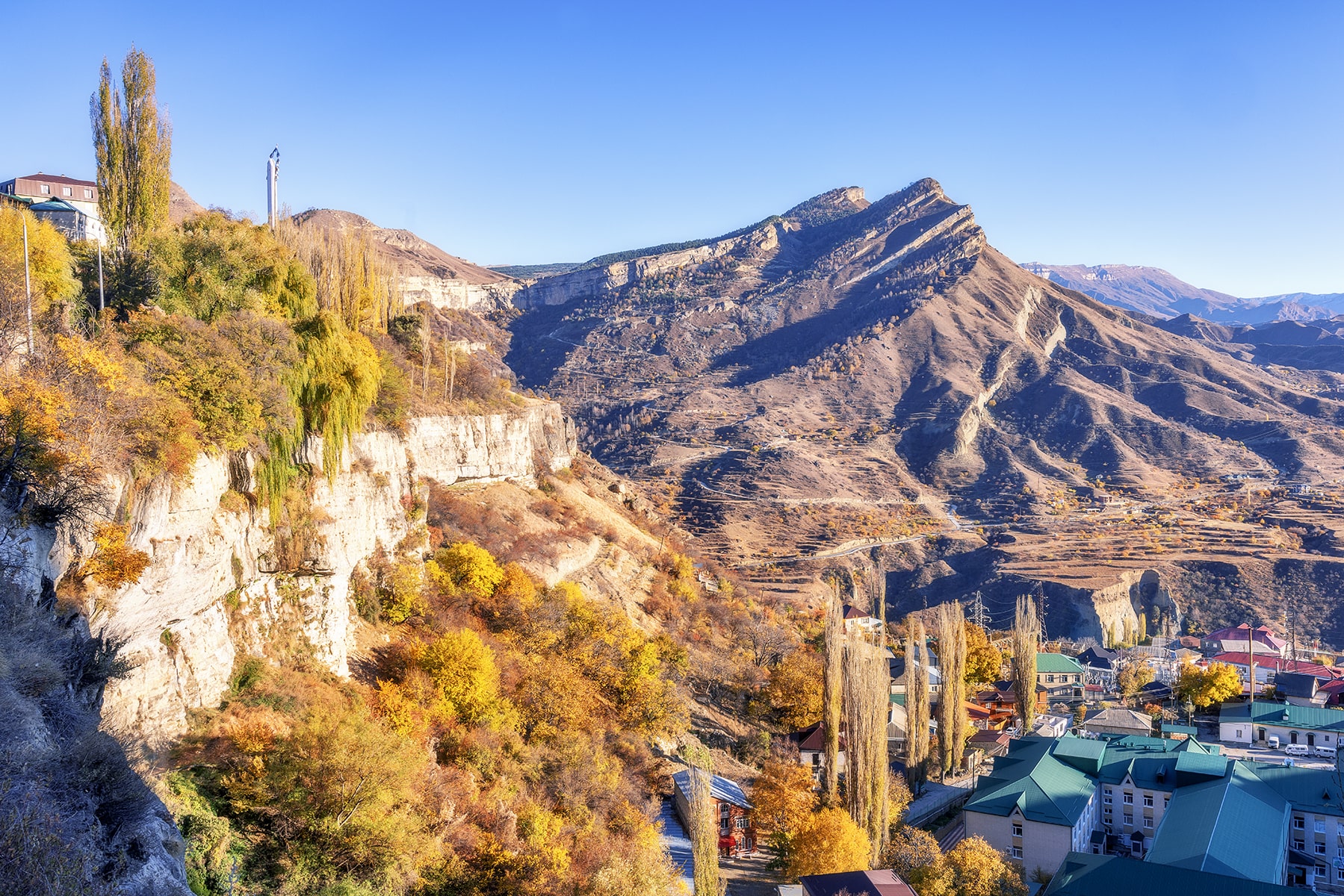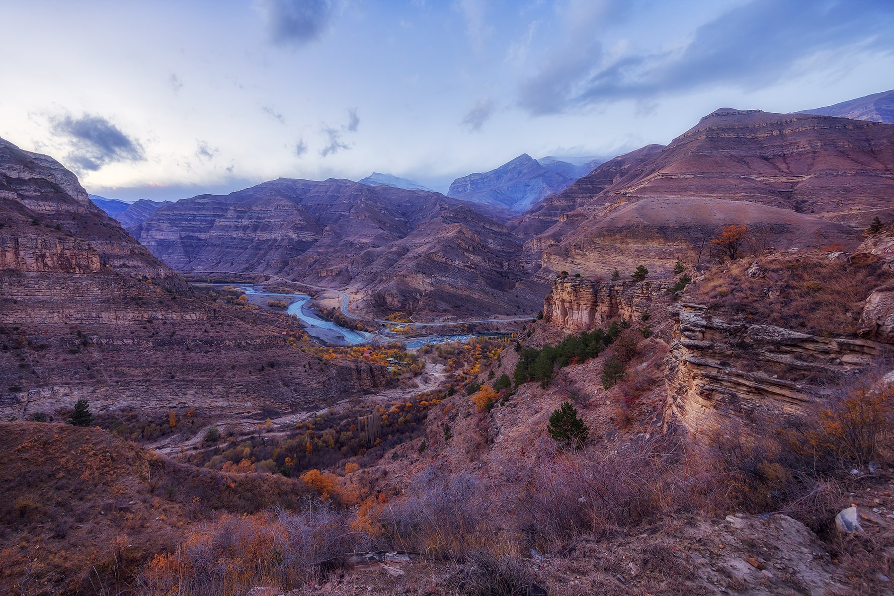 15:50 — Посещение обзорной площадки п.Дубки. Поселок Дубки находится в самой высокой точке Сулакского каньона. Высота каньона в среднем составляет 1300 метров, а в Дубках она достигает 1920 метров. Вы посетите главную смотровую площадку с панорамным видом. Вас обязательно поразит насыщенный бирюзовый цвет речной воды, напоминающий цвет воды тропических морских курортов; горные птицы, летающие в каньоне ниже смотровых площадок. И все это на фоне фантастически красивых горных пейзажей.